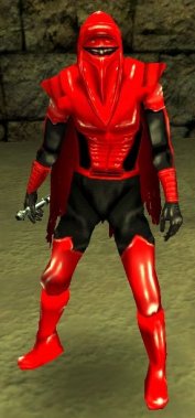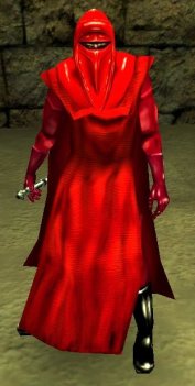 Le Garde Royal, dans sa robe rouge, ainsi que Kir Kanos et Carnor Jax, les personnages