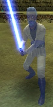 le personnage absolument ridicule, allant même jusqu'à avoir le sabre laser qui lui passe au milieu