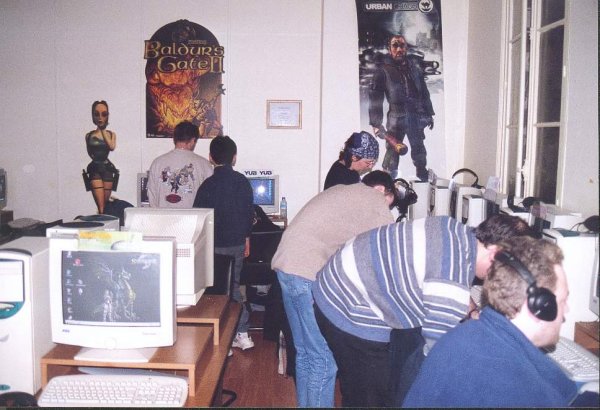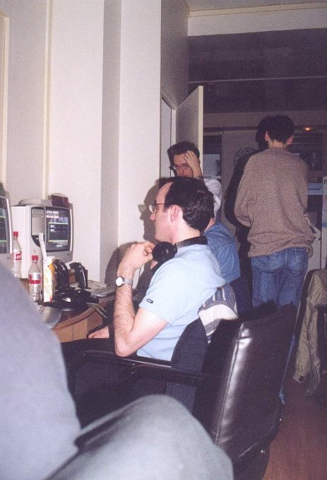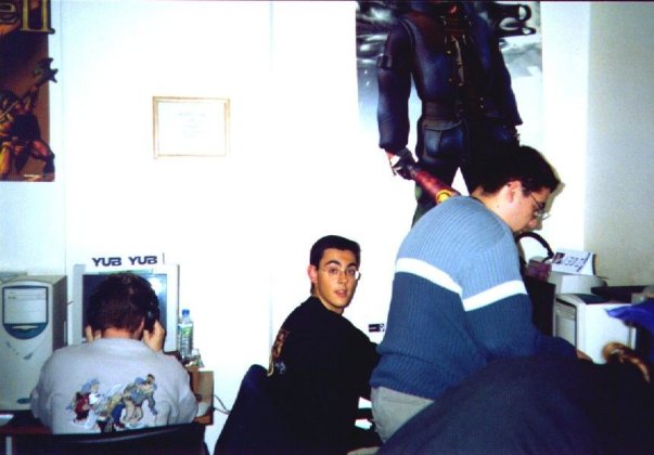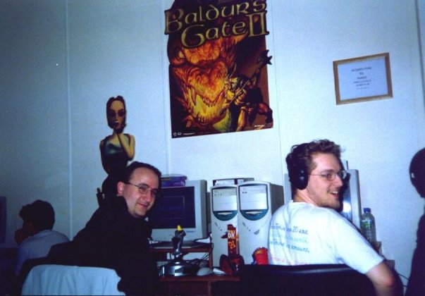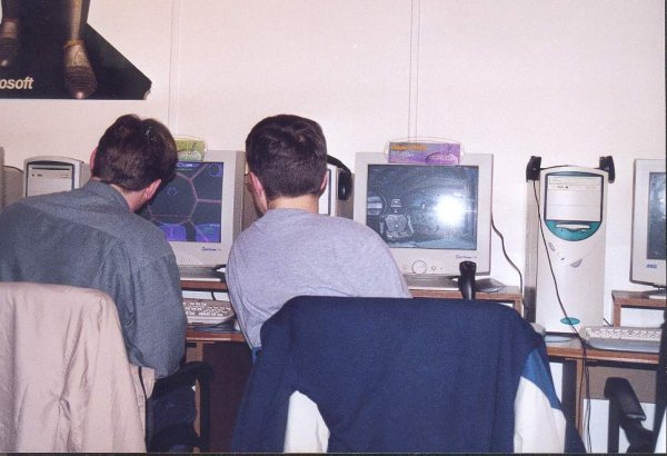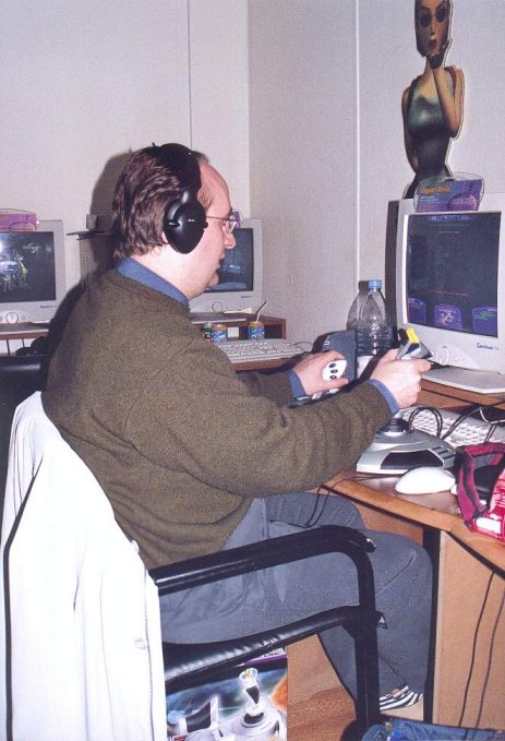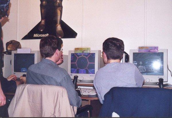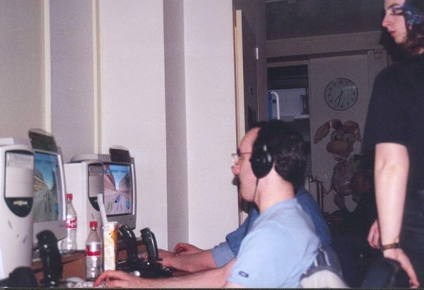Spectre (à droite) observe Darklord en train de jouer. On aperçoit un bout de RedTIE à l'extreme gauche.