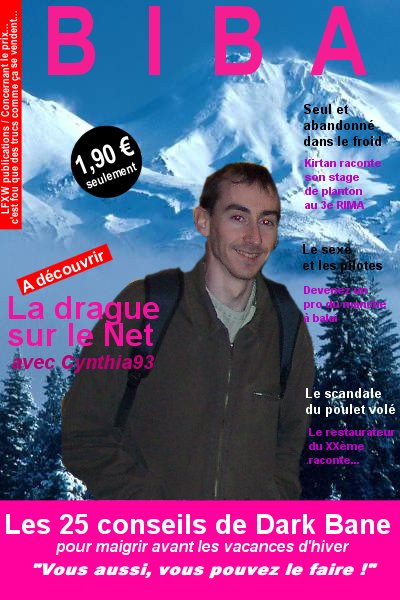 Délaissant les casseroles pour sa guitare et son PC (que ne donnerait-on pas pour une "petite" partie de Team Fortress 2 de 5 heures d'affilée), Bane ne se nourrit que de graine de soja et du repas bisannuel organisé avant les Soirées Réseau. Son régime est tellement remarquable qu'il lui a permis de faire la couverture de Biba comme l'atteste la photo ci-contre.