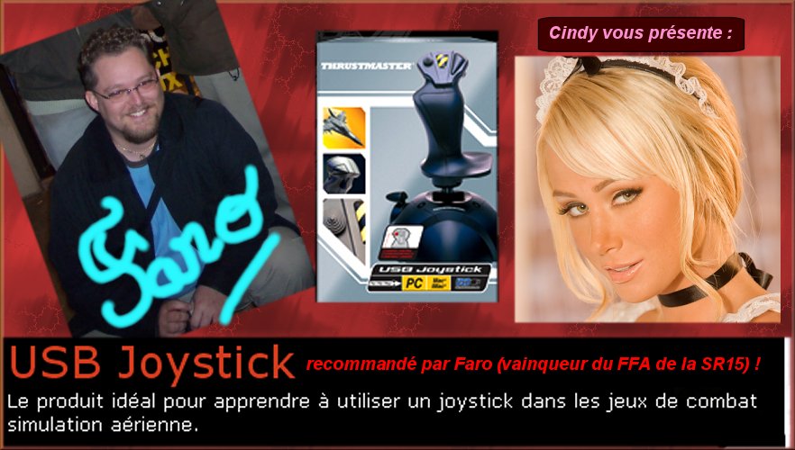 Mais la surprise n'est pas que Faro remporte le FFA ; chacun connaît ses talents de pilote. La véritable surprise, c'est que Faro a surclassé tous ses adversaires à l'aide d'un Thrustmaster (attention aux postillons lorsque vous prononcez ce nom) qui répond au nom de code terrible de USB Joystick...