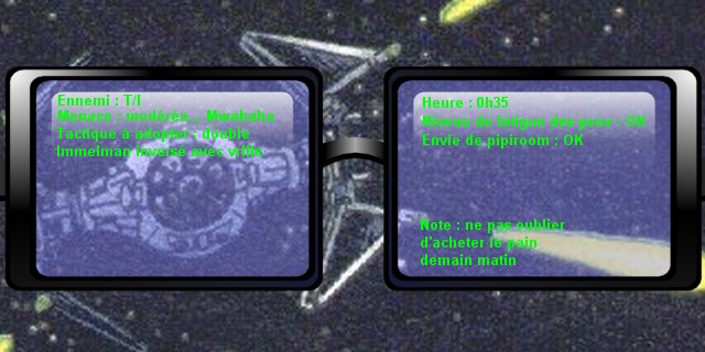 Envié ou raillé... le HUD a toujours suscité la curiosité. Alors en exclusivité pour vous, j'ai pris une photo du HUD de ce pilote d'élite durant la soirée.