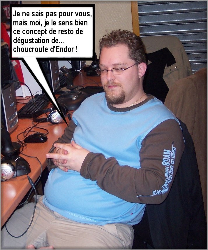 Persuadé qu'il devrait se rendre à une soirée déguisée (dont le thème était les "Détectives Privés"), Rogma avait piqué le chapeau de Philip Marlowe et la chemise de Thomas Magnum. Ajoutez à cela la barbe de 3 jours, et on croirait voir Gabriel Lecouvreur. Raté. Il s'agissait bien d'une soirée "X-Wing"...